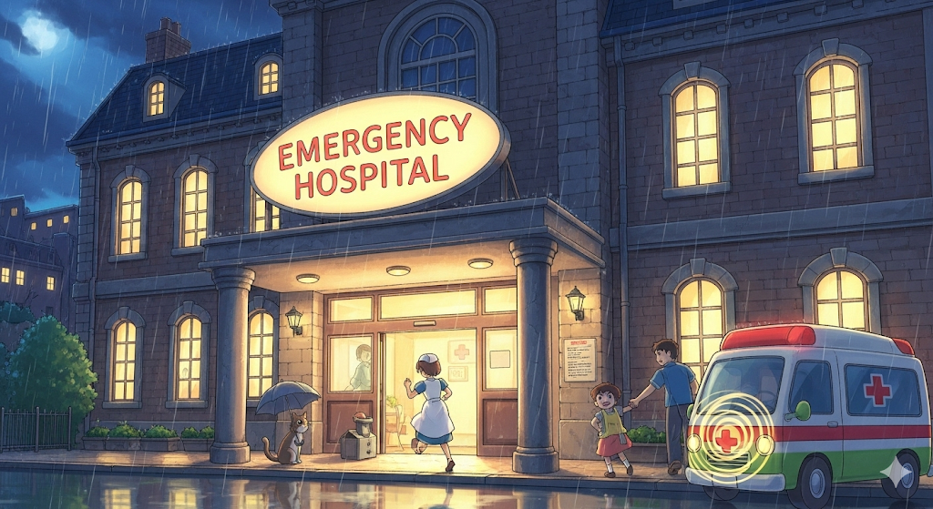 hospital [ˈhɑːspɪtl] (AmE) / [ˈhɒspɪtl] (BrE) 치료와 회복의 장소, 위급함과 안심이 공존