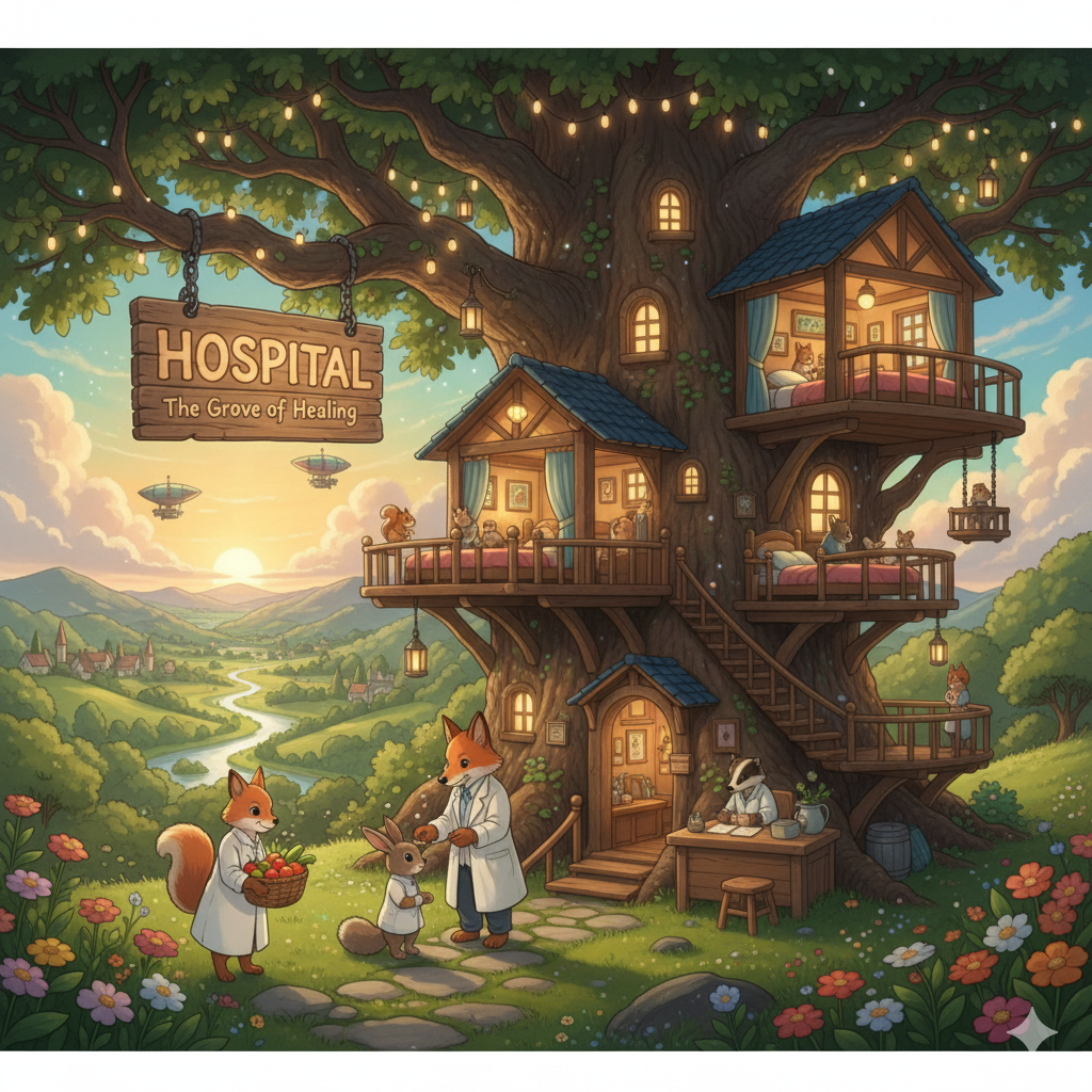 아픈 사람들을 치료하고 돌보기 위해 의료진과 시설을 갖춘 기관을 의미합니다. 단순히 '의원(clinic)'을 넘어, 응급 상황을 처리하고 복잡한 수술을 진행하는 등 입원과 전문적인 치료가 가능한 대형 의료 시설이라는 개념이 핵심입니다.