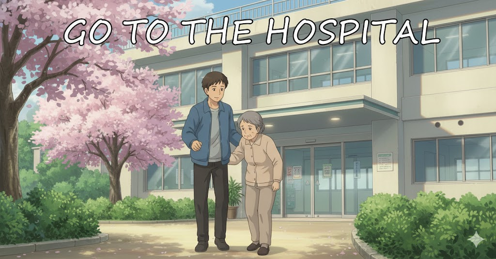 - 해석: 병원에 가다 (주로 큰 병이나 수술 등 심각한 경우)