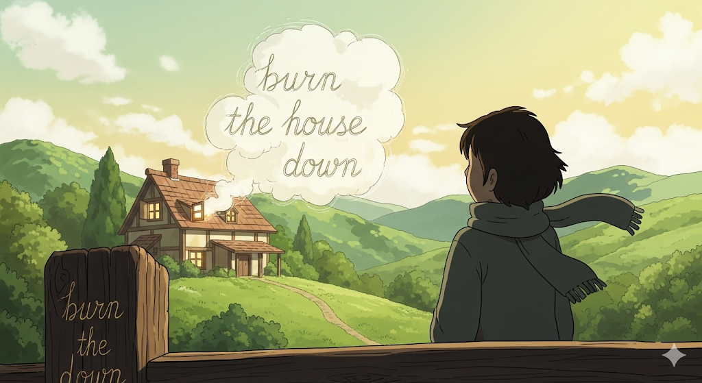 - 해석: 집을 태우다; (비유) 어떤 일을 망치다