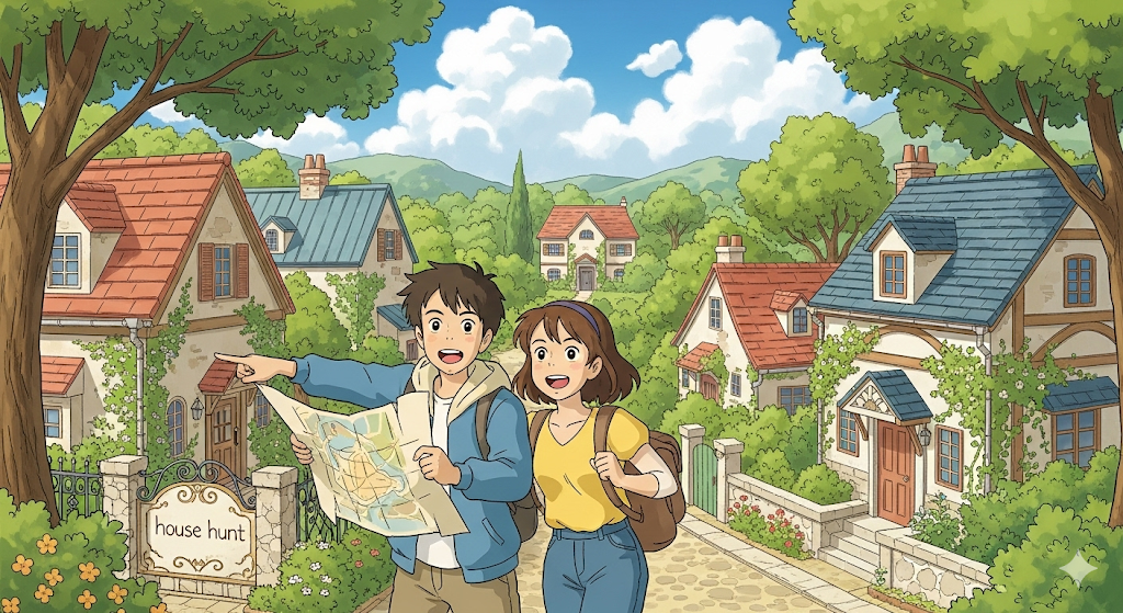 - They spent all weekend house hunting. (그들은 주말 내내 집을 찾아다녔다.)