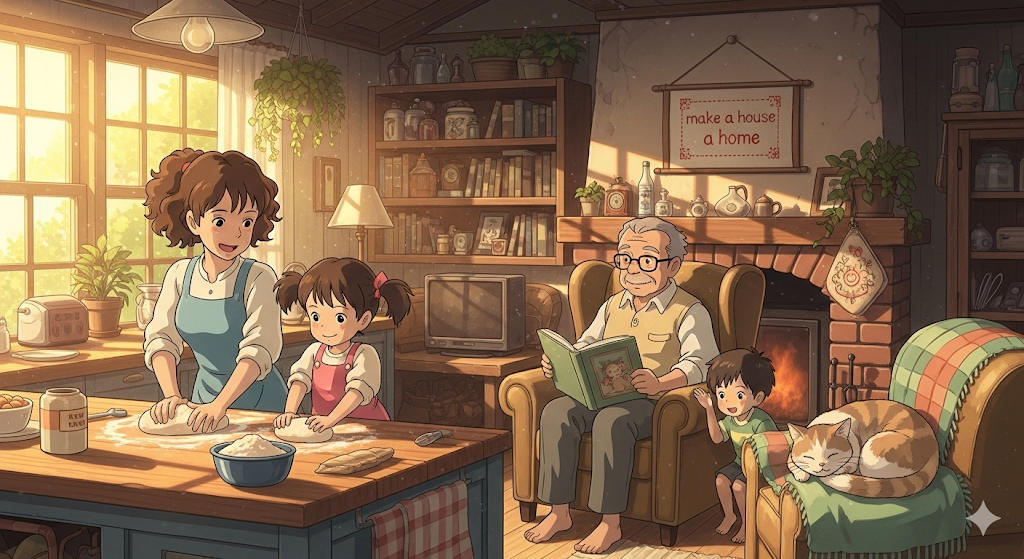 - 해석: 집을 살기 좋은 따뜻한 장소로 만들다
