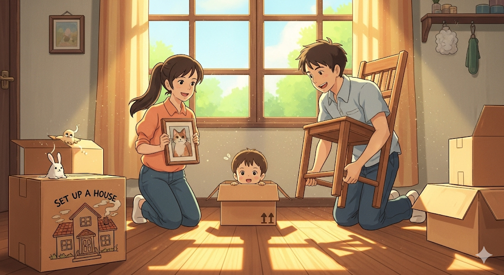 - We are finally ready to set up house after the long move. (우리는 긴 이사 끝에 마침내 살림을 시작할 준비가 되었다.)