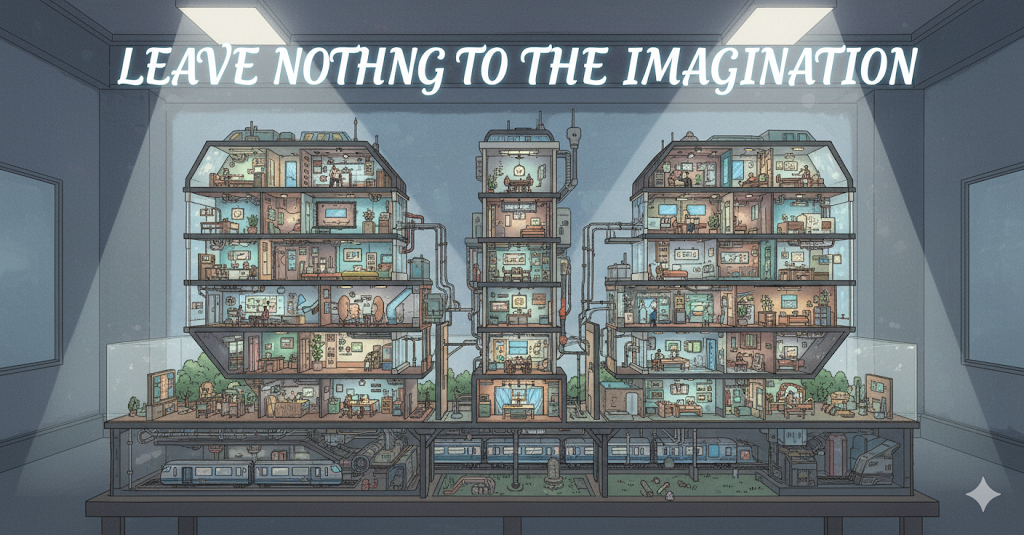 - The architect's blueprint was so detailed that it left nothing to the imagination regarding the final construction. (그 건축가의 청사진은 매우 상세해서 최종 건설에 관해 상상의 여지를 남기지 않았다.)