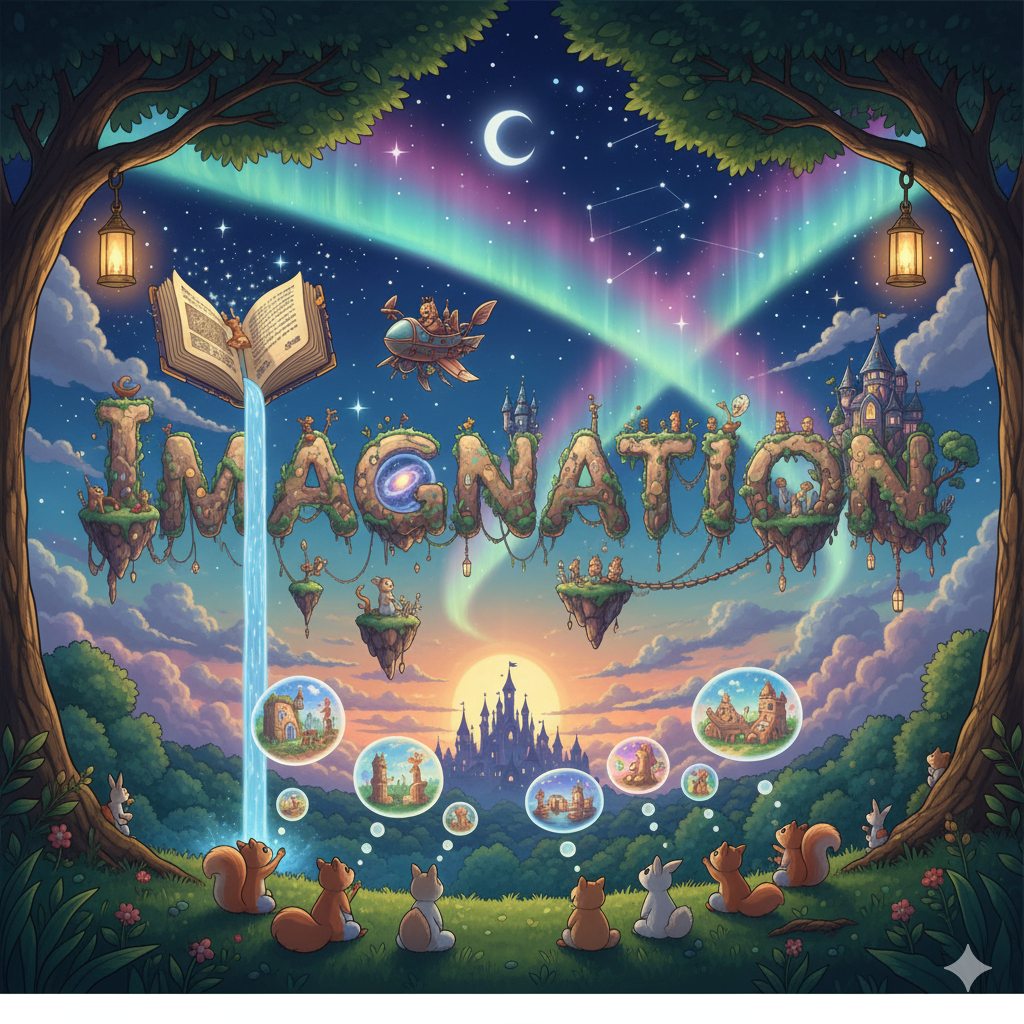 현실에 없는 이미지, 아이디어, 또는 시나리오를 마음속으로 만들어내거나 떠올리는 능력을 의미합니다. 단순히 '생각(thought)'하는 것을 넘어, 새롭고 독창적인 것을 창조해내는 정신적인 힘에 초점이 맞춰져 있습니다. 예술, 과학, 문제 해결 등 모든 창조적 활동의 근원입니다.