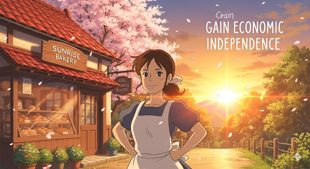 gain economic independence [ɡeɪn ˌiːkəˌnɑːmɪk ˌɪndɪˈpendəns]
