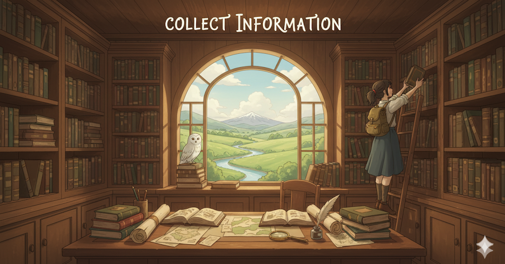 - *information**은 지식의 기본 명사이며, 관련 숙어들은 그 지식을 '모으고', '찾고', '접근하는' 능동적인 행위를 나타냅니다.