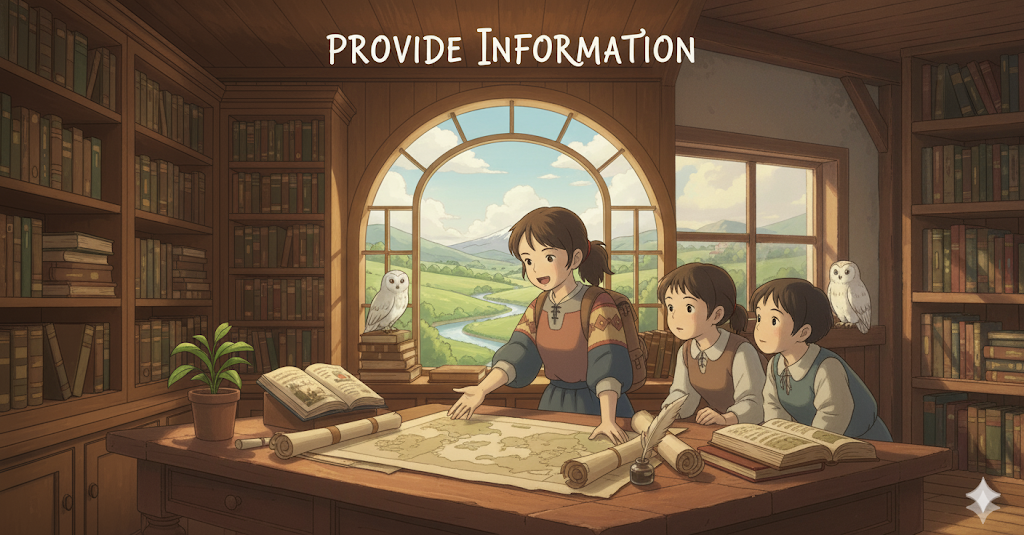 **필요하거나 요구되는 사실, 자료(data), 또는 지식(knowledge)을 다른 사람이나 집단에게 '건네주거나 공급하는 능동적인 행위'**를 의미합니다. **'소통(communication)의 기본 기능'**이자, **'상대방의 이해(understanding)나 결정(decision)을 돕는 지원 행위'**에 초점이 맞추어져 있습니다.