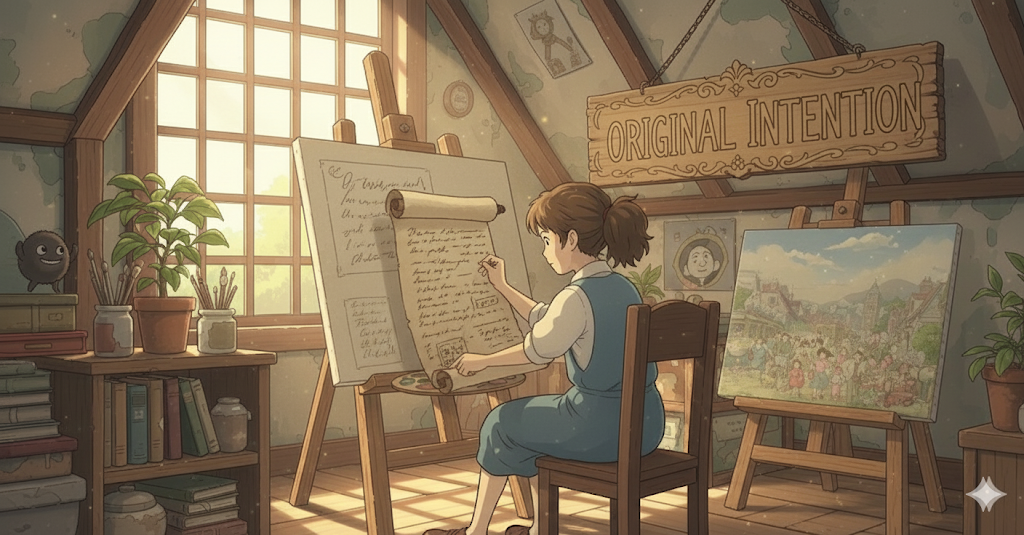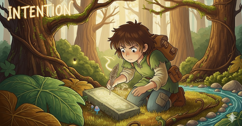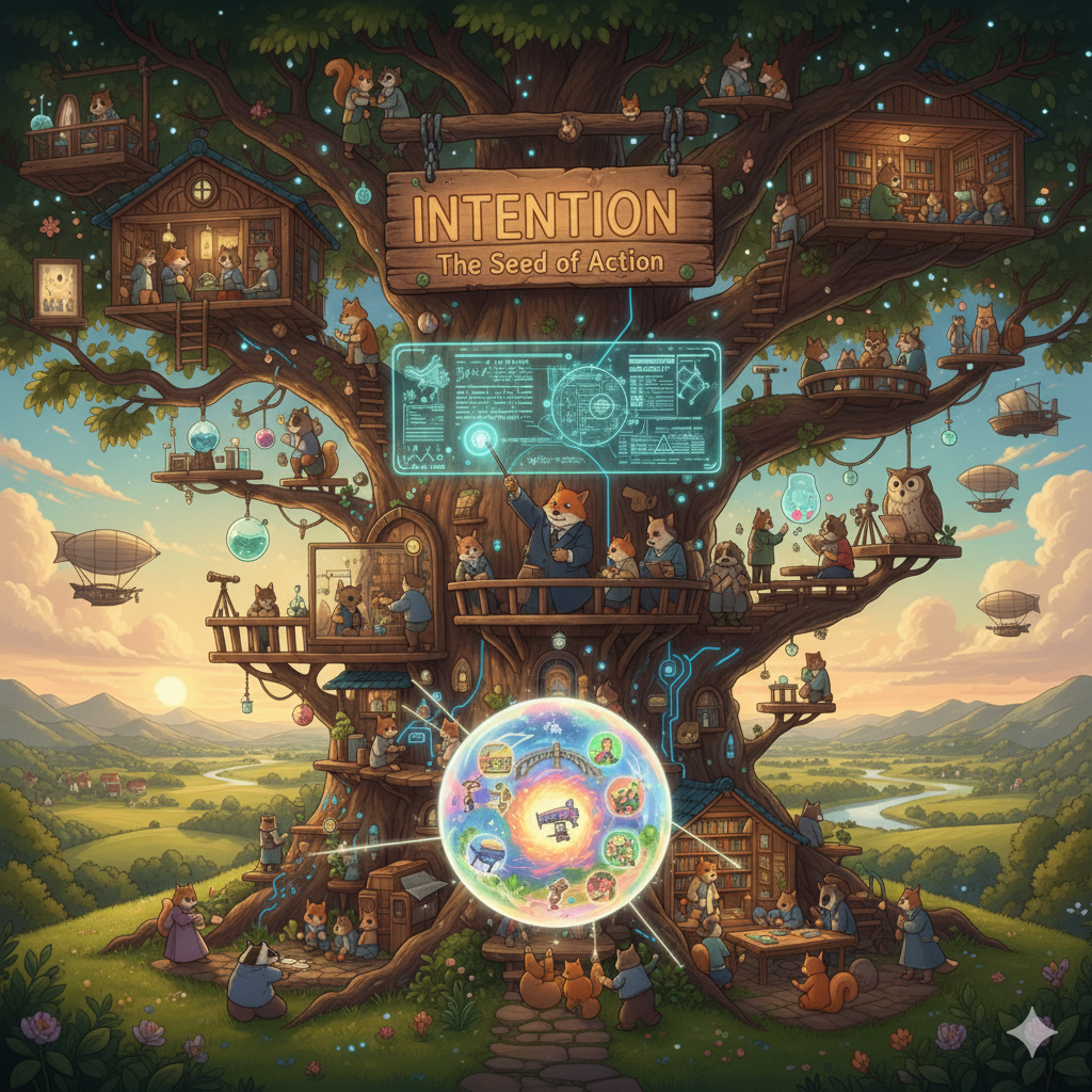 어떤 행동을 하고자 하는 마음의 계획이나 목표를 의미합니다. 단순히 '생각(thought)'하는 것을 넘어, **'미래의 행동을 결정하는 내적인 동기'**에 초점이 맞추어져 있습니다. 말이나 행동 속에 담긴 **'숨겨진 목적'**이라는 뉘앙스를 가지기도 합니다.