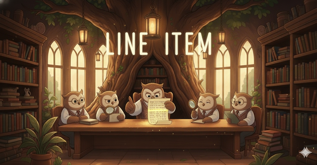 예산서, 청구서, 또는 재정 보고서 등에서 **하나의 줄(line)을 차지하여 비용이나 수입(income)의 세부적인 부분을 나타내는 항목(item)**을 의미합니다. **'전체 금액을 구성하는 가장 작은, 명확히 구분된 재정 단위'**라는 **회계적, 재정적 세부 사항(detail)**에 초점이 맞추어져 있습니다.