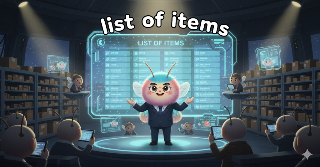 - 해석: 여러 개의 물품이나 안건 등을 순서대로 나열한 목록.