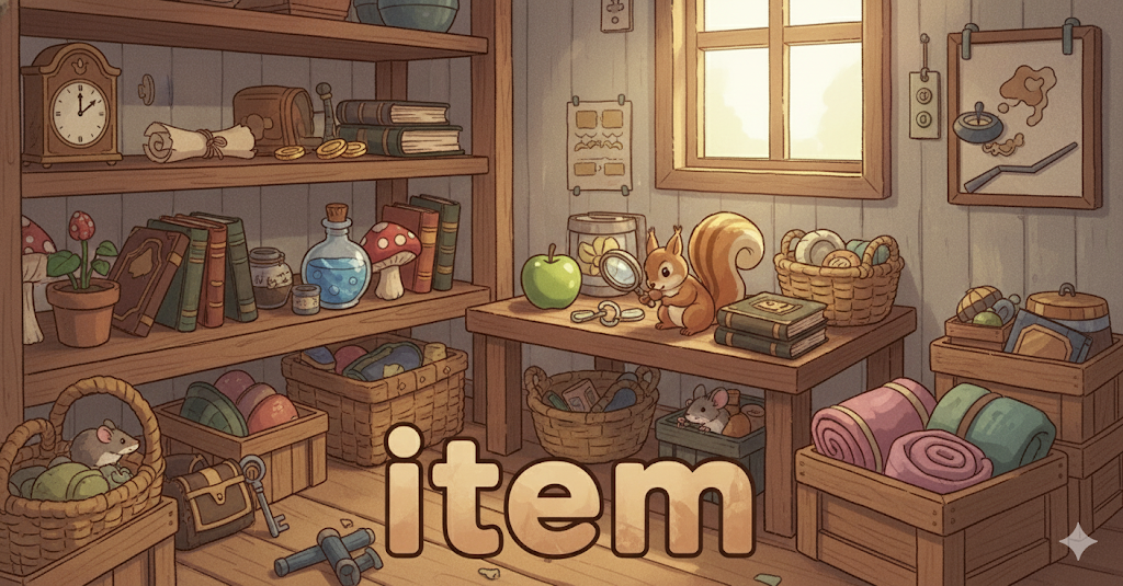 item [ˈaɪtəm] 목록에 있는 개별 요소로 구체적 사물을 의미하는 단어.