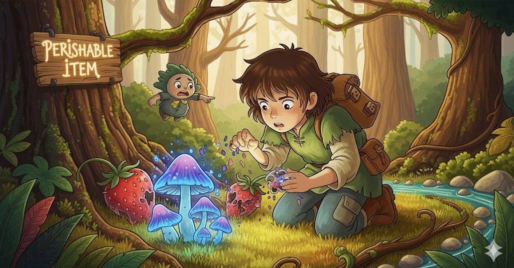 식품(food)처럼 **시간이 지나면 신선도와 품질이 떨어져서 상하거나 부패하기 쉬운 물품(item)**을 의미합니다. **'빠른 소비나 냉장 보관이 필수적인 물품'**이라는 뉘앙스를 가지며, **'긴 시간(length of time) 동안 보관이 어려움'**에 초점이 맞추어져 있습니다.