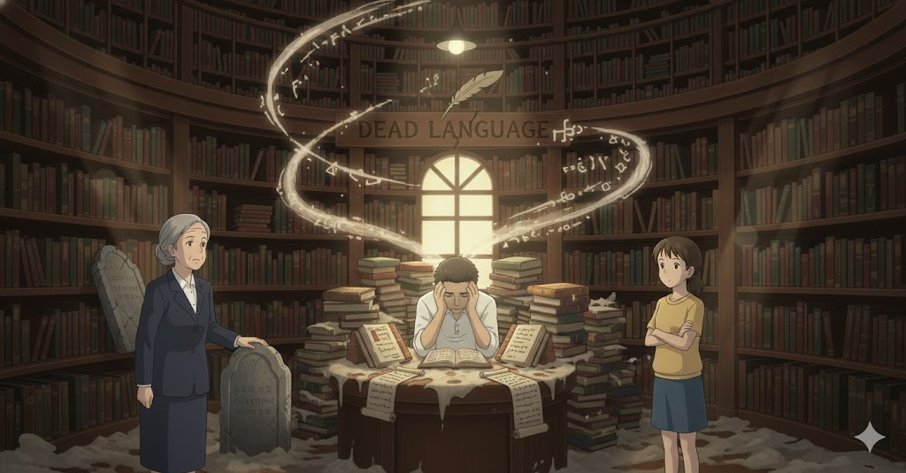 - 해석: 더 이상 일상적인 대화에서 사용되지 않는 언어 (예: 라틴어, 고대 그리스어).