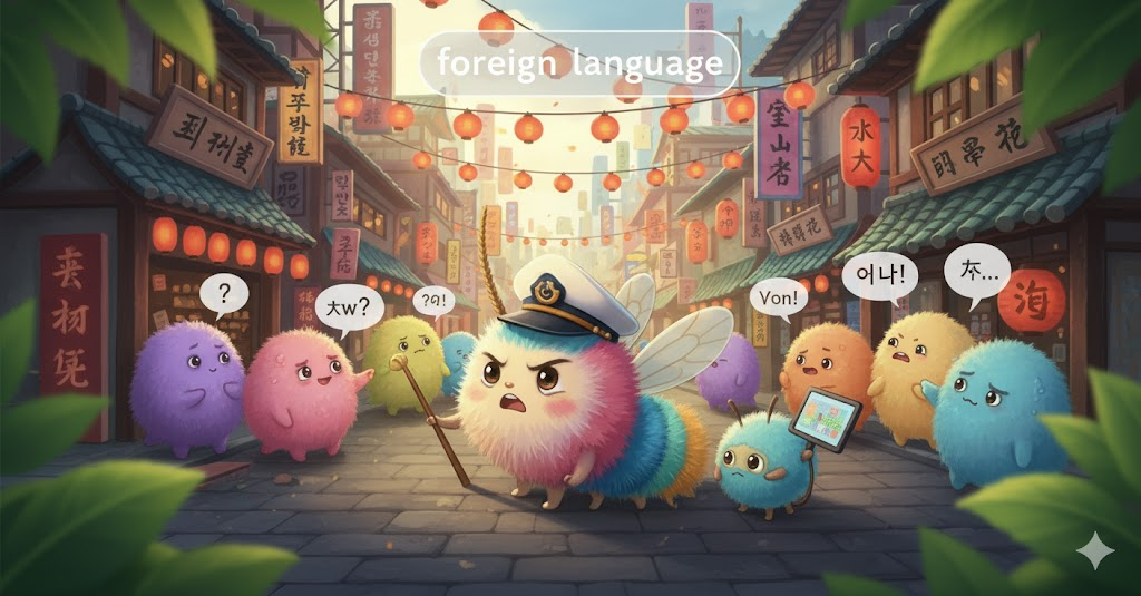 - 해석: 자신이 속한 사회나 국가의 주요 언어가 아닌 다른 나라의 언어.