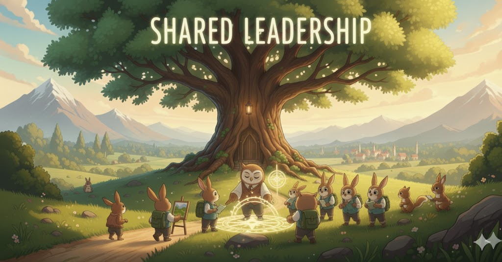 - 해석: 조직 내에서 리더십의 역할과 책임이 한 사람에게 집중되지 않고 구성원들에게 분산되어 공유되는 형태.