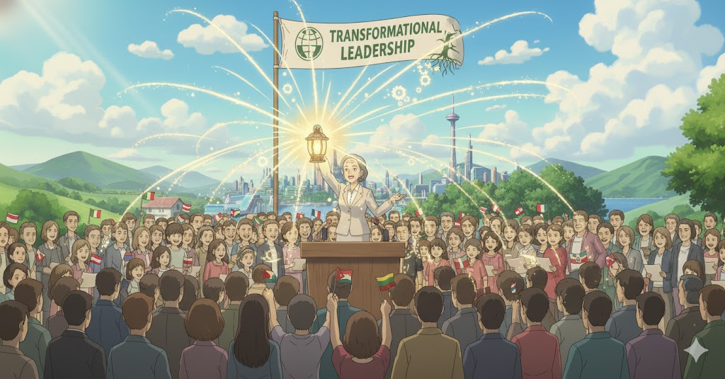 - 해석: 비전과 영감을 통해 구성원의 가치관과 동기를 변화시켜 조직 전체의 혁신을 이끌어내는 리더십 유형.