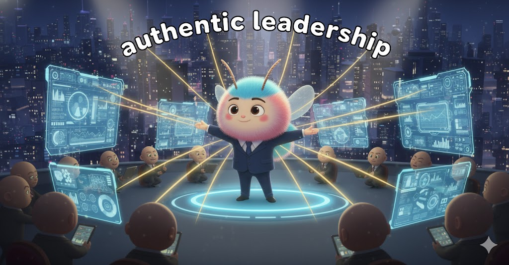 리더가 자신의 진정한 자아(가치, 신념, 성격)를 인지하고, 그것을 바탕으로 투명하고 윤리적으로 행동하며, 그 진정성을 통해 구성원들과 신뢰를 구축하는 리더십 스타일을 의미합니다. **'자기 인식', '투명성', '도덕성'**이 핵심 요소이며, **'리더의 진솔함'**에 초점이 맞추어져 있습니다.