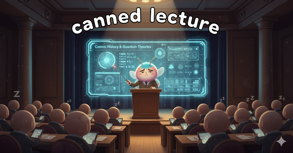 (명사) 통조림 강연, 미리 준비된/매번 똑같은 강의