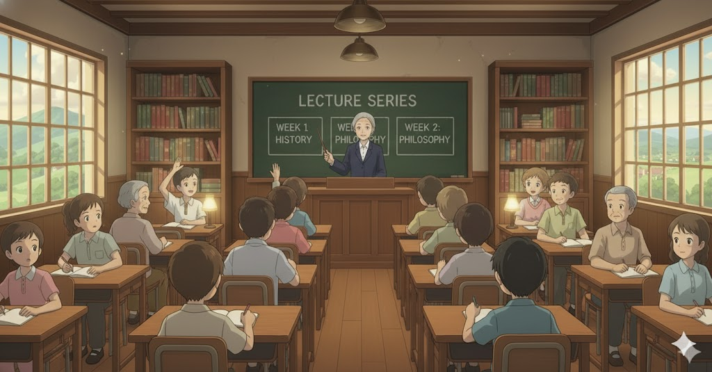 학교나 전문 기관의 구성원이 아닌 일반 대중에게도 공개되어 무료 또는 저렴한 비용으로 참여할 수 있도록 열린 강의나 강연을 의미합니다. **'지식의 공유'**와 **'일반 대중의 접근성'**에 초점이 맞추어져 있으며, 학술적인 내용보다는 대중적인 관심사를 다룰 때가 많습니다.