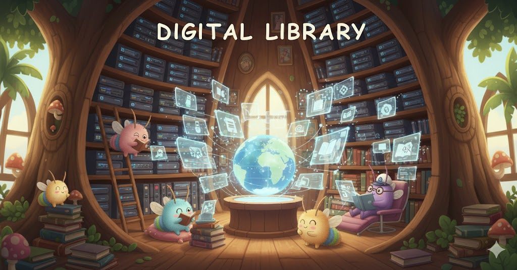 책이나 잡지 같은 전통적인 자료뿐만 아니라, 전자 문서, 이미지, 오디오, 비디오 등 모든 형태의 디지털 자료를 수집, 저장, 관리하여 전자적으로 접근 가능하게 하는 시스템을 의미합니다. 물리적 공간의 제한 없이 원격으로 지식에 접근할 수 있게 한다는 개념이 핵심입니다.