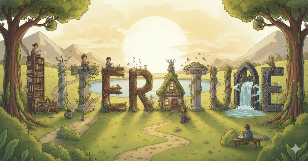 라틴어 litteratura ("쓰기, 문법, 학습, 학식")에서 유래 → littera ("글자")와 연결 → 즉, 원래 **'글자를 통한 학습이나 지식'**을 의미했음 → 이 의미가 현대 영어에서 '뛰어난 예술적 가치를 지닌 창작적인 글' (문학) 명사로 굳어졌어요.1 나아가 이러한 '글로 된 지식'이라는 개념이 확장되어 '특정 주제에 관해 출판된 모든 글이나 연구 자료' (문헌, 참고 자료)를 뜻하게 되었어요. 즉, **'창의적인 예술로서의 글 또는 특정 주제에 대한 글 자료'**를 나타내는 핵심 단어예요.