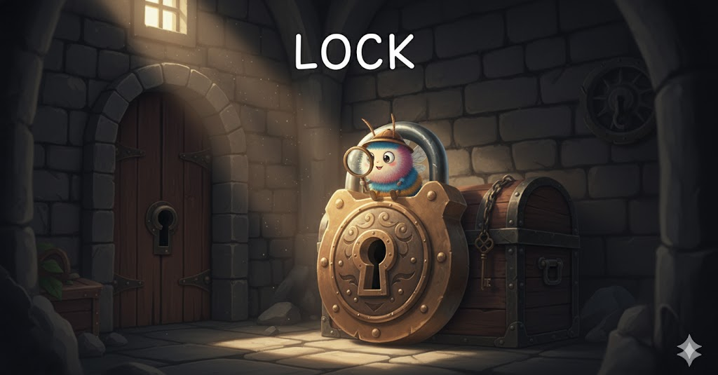 | lock | 자물쇠, 잠그다 | 명사/동사로, '보안'. | '접근' '을' '막고' '안전' '을' '확보하는' '기본' '행위' '나' '장치' '를' '나타냄'. |