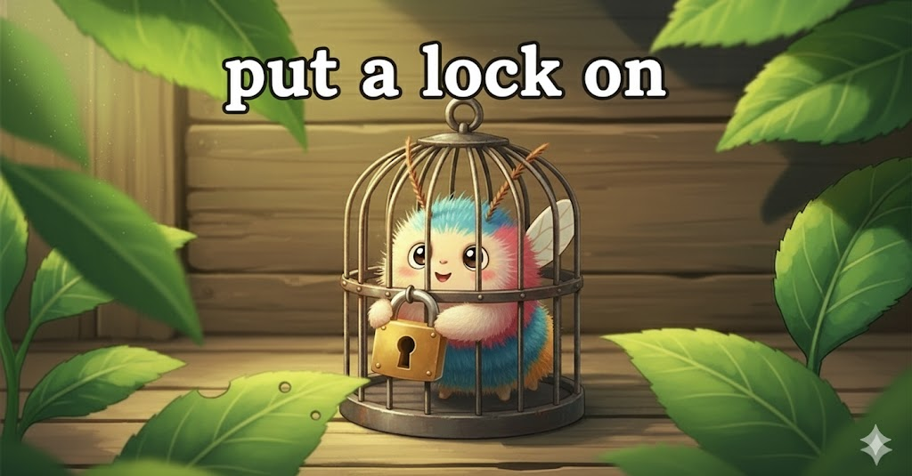 put a lock on [pʊt ə lɑːk ɑːn]