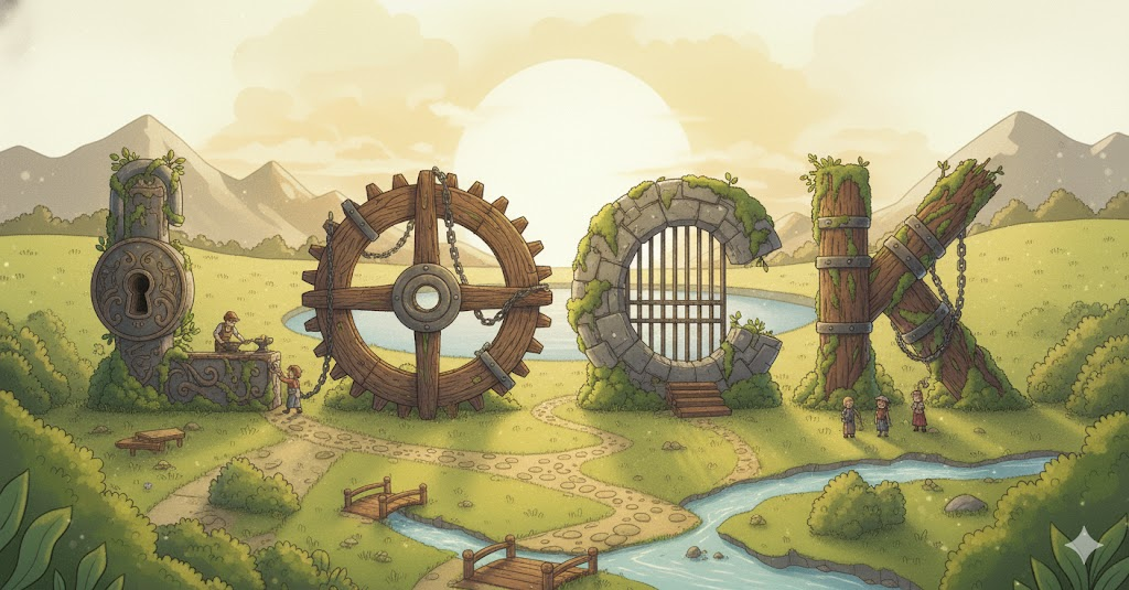 자물쇠 유형, 논쟁, 확정. 물리적인 잠금 장치와 비유적인 갈등 및 구속.