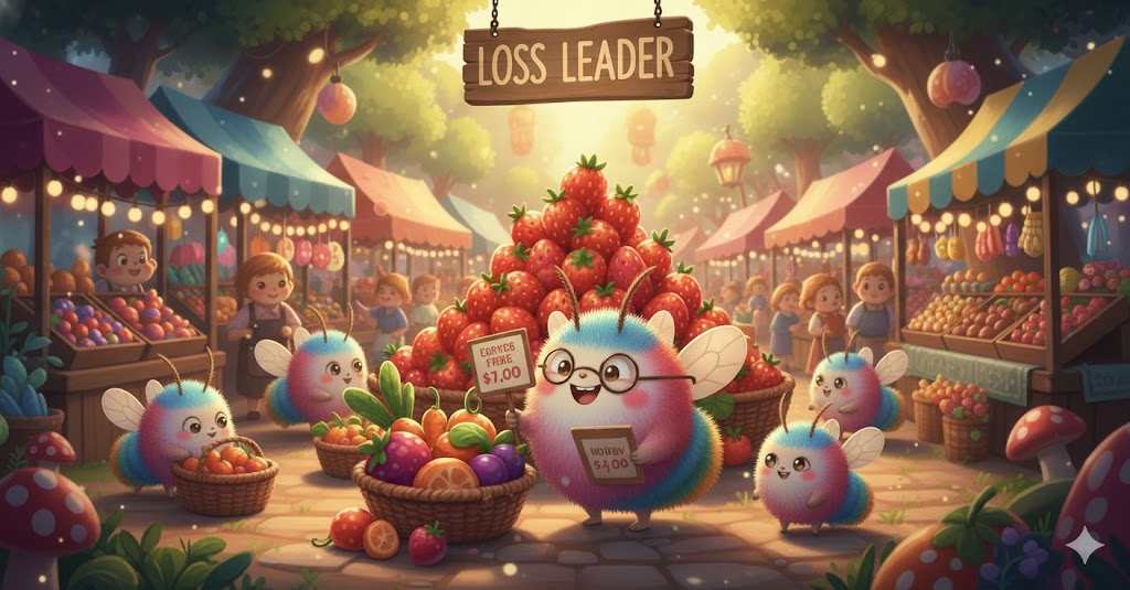 - 해석: 고객 유인을 위해 원가보다 싸게 파는 상품. (미끼 상품)