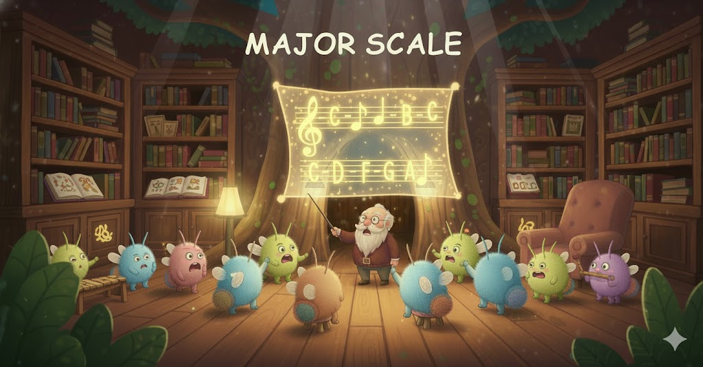 - Learning the major scale is the first lesson in any music theory course. (장음계를 배우는 것은 모든 음악 이론 과정의 첫 번째 수업이다.)