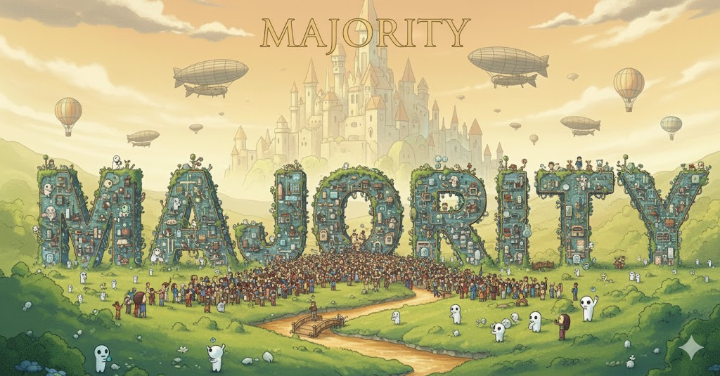 'majority'는 기본적으로 "대다수", **"과반수"**라는 뜻으로 쓰이며, 특정 그룹이나 집단에서 전체의 절반(50%)을 넘는 수 또는 그 집단을 의미합니다. 정치, 사회, 통계, 비즈니스 등 집단의 의사 결정과 대표성을 논하는 분야에서 핵심 단어로 등장합니다.