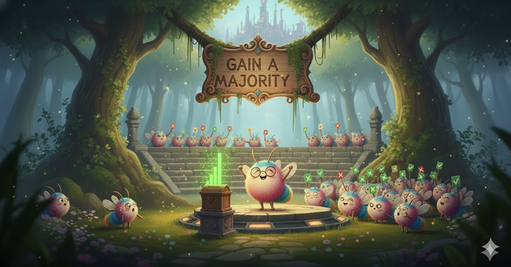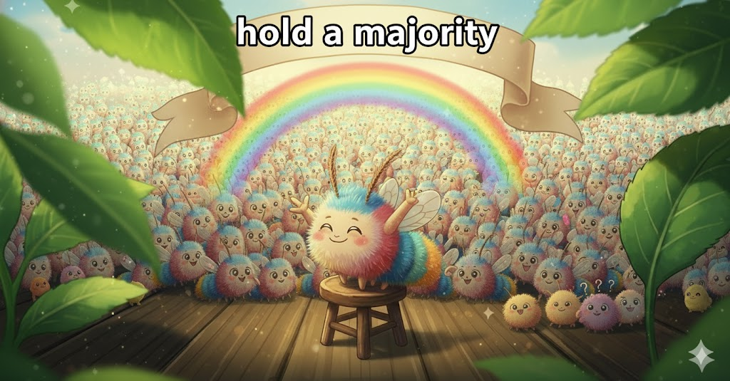 과반수의 기준과 획득. 투표를 통해 다수결을 얻거나 유지하는 것.