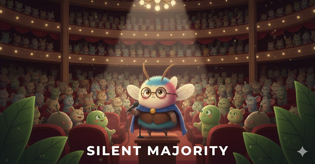 - 해석: 의견 표명을 적극적으로 하지 않지만, 어떤 문제에 대해 특정 의견을 공유하는 것으로 여겨지는 대다수의 사람들.