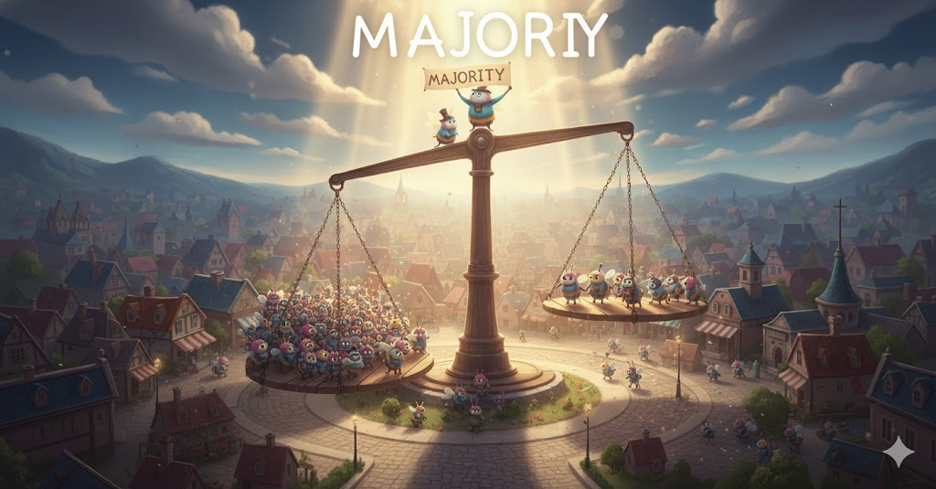 - 해석: 다수의 의견이 최종 결정이나 규칙이 되는 민주주의의 기본적인 원칙.