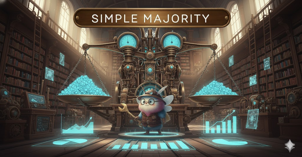 - 해석: 투표나 결정에서 총 투표 수의 50%를 초과하는 가장 기본적인 다수 기준.