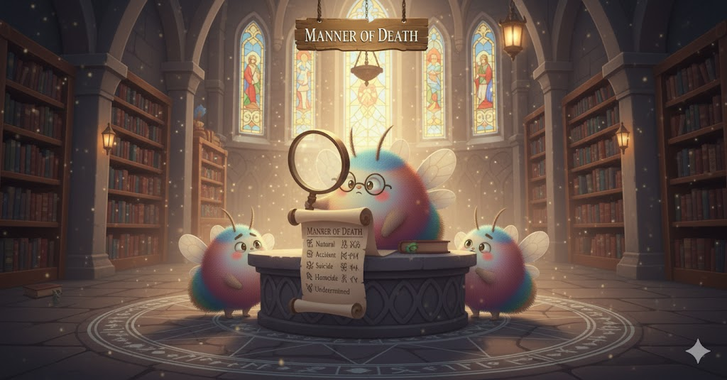 **사람의 사망(death)이 초래된 근본적인 범주(예: 자연사, 사고사, 자살, 타살, 불명)**를 의미하는 법의학적 용어입니다. '사망 원인(cause of death)'과는 구별되며, **'죽음을 초래한 환경적, 행동적 맥락(context)'**에 초점이 맞추어져 있습니다.