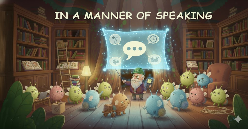 - 예문: He is, in a manner of speaking, the founder of the group, though someone else came up with the idea. (그가 아이디어를 낸 것은 아니지만, 말하자면 그 그룹의 창립자이다.)