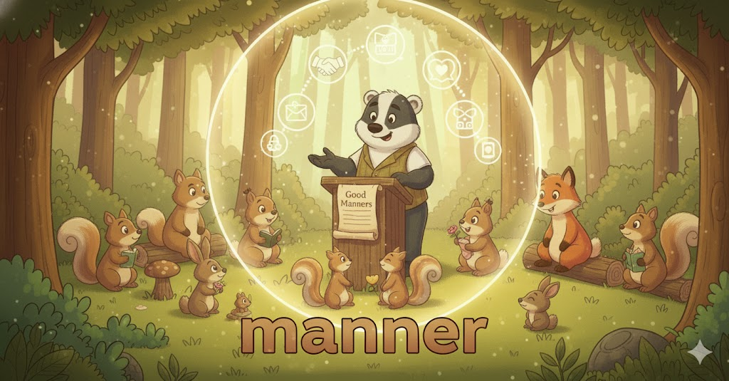 라틴어 manus ("손")에서 유래 → 구 프랑스어 maniere ("손의 움직임, 방식, 스타일")를 거쳐 영어로 유입 → 즉, 원래 **'손으로 다루는 방식이나, 행동하는 방식'**을 의미했음 → 이 의미가 현대 영어에서 '어떤 일이 행해지는 특정한 방법이나 절차' (방식, 방법) 명사로 굳어졌어요. 나아가 이러한 '행동하는 방식'이라는 개념이 확장되어 '다른 사람에게 보이는 외적인 모습이나 태도' (태도, 거동)를 뜻하게 되었고, 복수형 **'manners'**는 사회적 규범에 따른 '공손한 행동이나 예의범절' (예의범절, 매너)을 의미하게 되었어요. 즉, **'행동의 방법, 외적인 태도, 또는 사회적 규범'**을 나타내는 핵심 다의어예요.