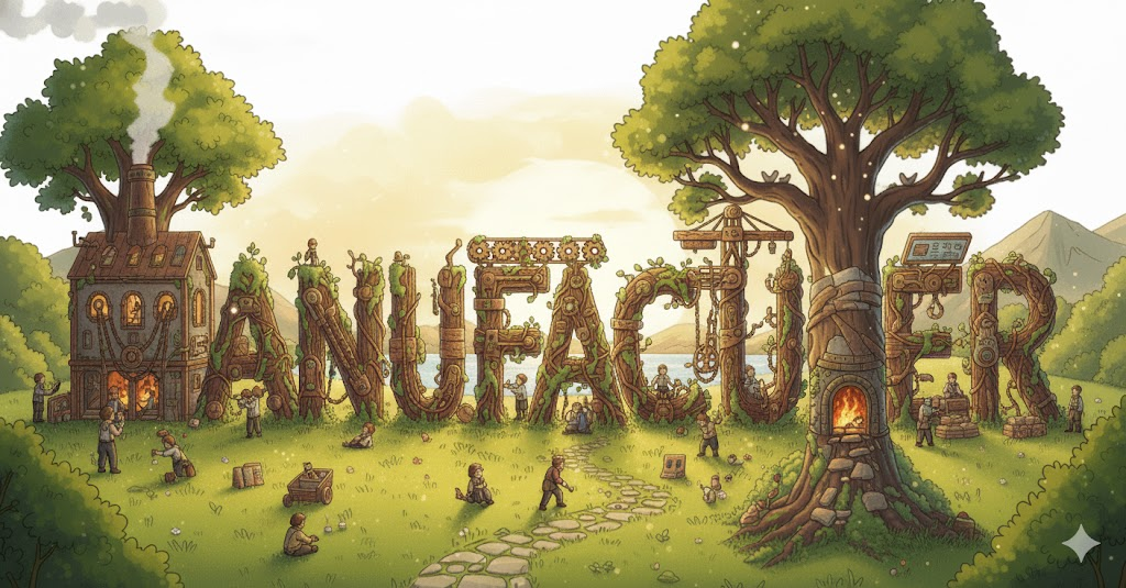 라틴어 manū ("손으로") + facere ("만들다")에서 유래한 manufacture (동사: "손으로 만들다")에 행위자 접미사 -er이 붙어 형성 → 즉, 원래 **'손으로 만드는 사람'**을 의미했음 → 이 의미가 산업 혁명 이후 '기계와 노동력을 사용하여 대량으로 상품을 생산하는 조직' (제조업체, 제작사) 명사로 굳어졌어요. 핵심적으로 **'상품을 생산하는 주체'**를 나타내는 단어예요.