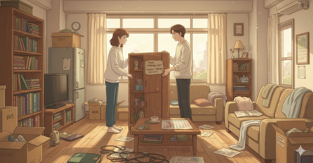 두 사람'이 '법적'(legal)인 '결혼'(marriage) 절차를 '밟기'(file) 전에, '실제' '결혼 생활'을 '경험'(experience)하기 위해 '동거'(cohabitation)하며 '함께 사는' 것을 의미합니다. 이는 '장기적인 관계'(long-term relationship) 유지를 위한 '예비적'인 '시험'(trial) **기간'**에 초점이 맞춰져 있습니다.