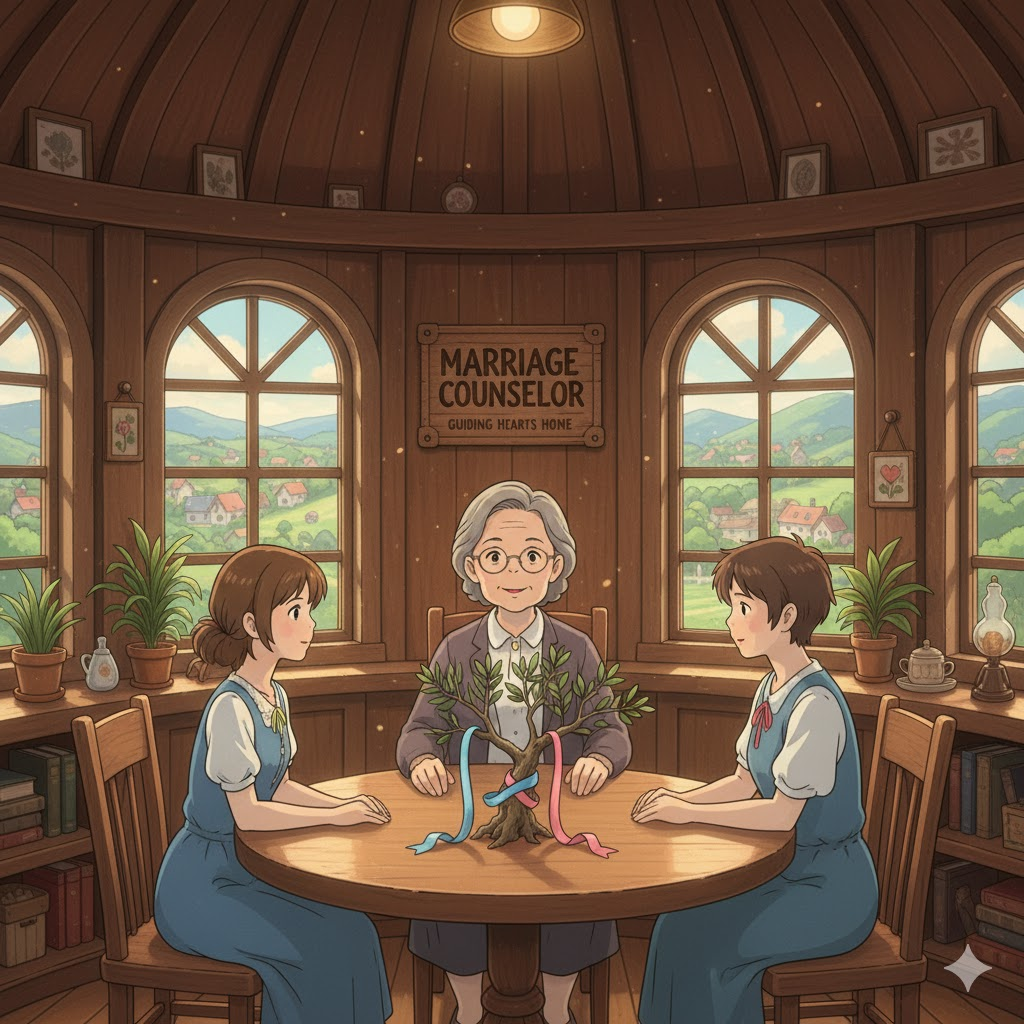 - 해석: 결혼 생활의 갈등과 문제를 해결할 수 있도록 부부에게 전문적인 조언과 치료를 제공하는 전문가.