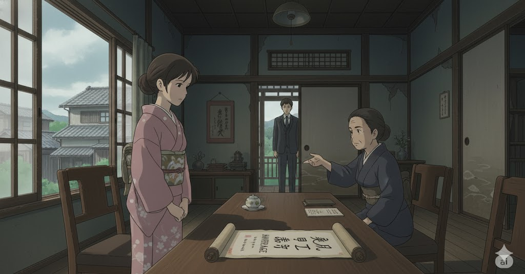 - 해석: 당사자들이 아닌 **부모나 제3자(중매인)**의 결정이나 합의에 의해 이루어지는 결혼. (자유 연애 결혼과 대비)
