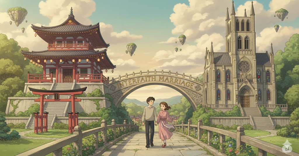 - 해석: 서로 다른 종교적 믿음이나 배경을 가진 사람들 사이의 결혼.
