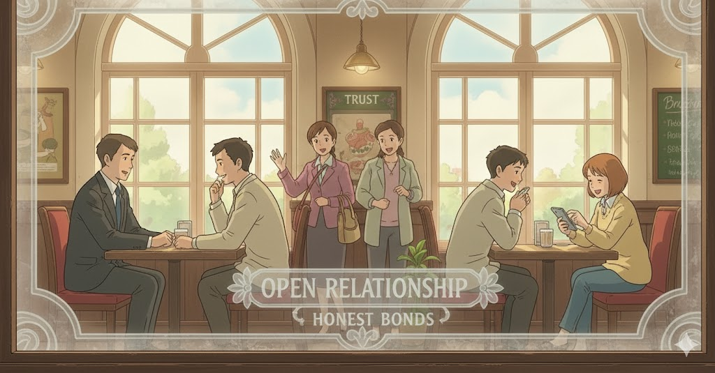 '결혼'(marriage) 관계'를 '유지'(maintain)하는 '두 사람'(two individuals)이 '서로의 동의'(agreement) 하에, '다른' 사람'과 '성적' 또는 '정서적'(emotional) '관계'를 '맺는' 것을 '허용'하는 '비전통적'인 결혼 형태를 의미합니다. 이는 '개인의 자유'(individual freedom)와 '규범'의 '경계'(limit)에 초점이 맞춰져 있습니다.