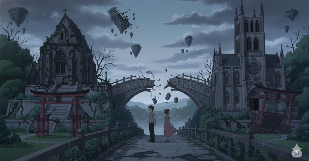 - 해석: 법적 절차를 통해 혼인 관계를 공식적으로 끝내는 행위 (이혼).
