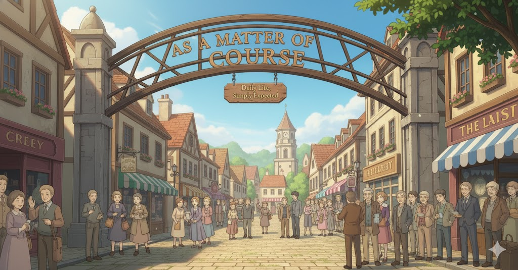 어떤 행동이나 결과가 '특별한 계획'(plan)이나 '요구'(demand) 없이, '일반적인', '예상'된 '경로'(course)나 '관행'(habit)에 '따라' '자연스럽게' 일어나는 것을 의미합니다. 이는 '의심'(doubt)의 여지 없는 '당연한 **일'**에 초점이 맞춰져 있습니다.
