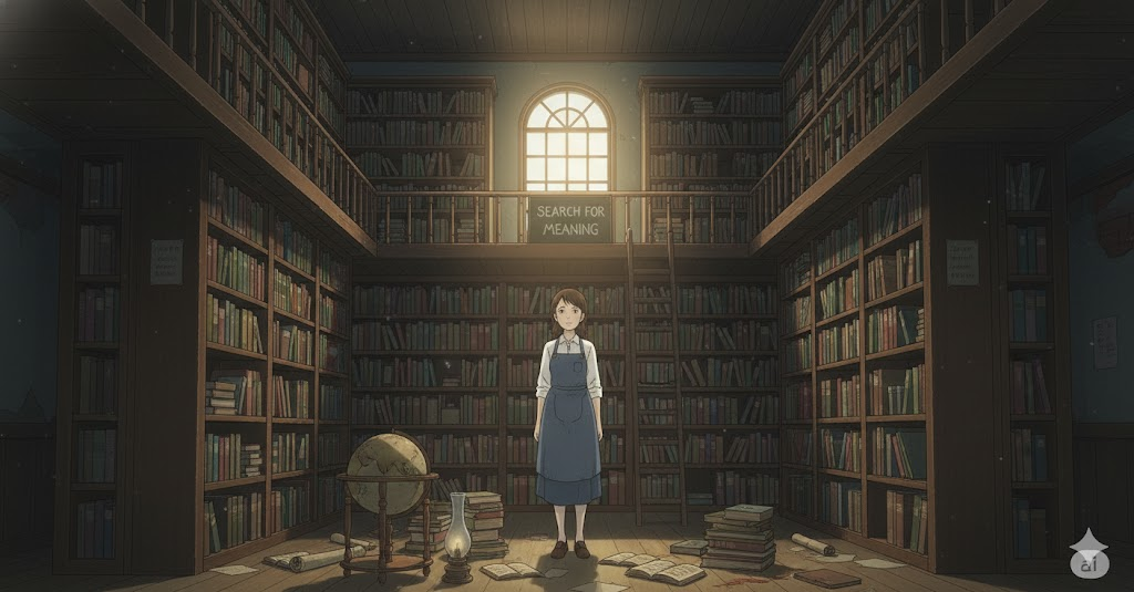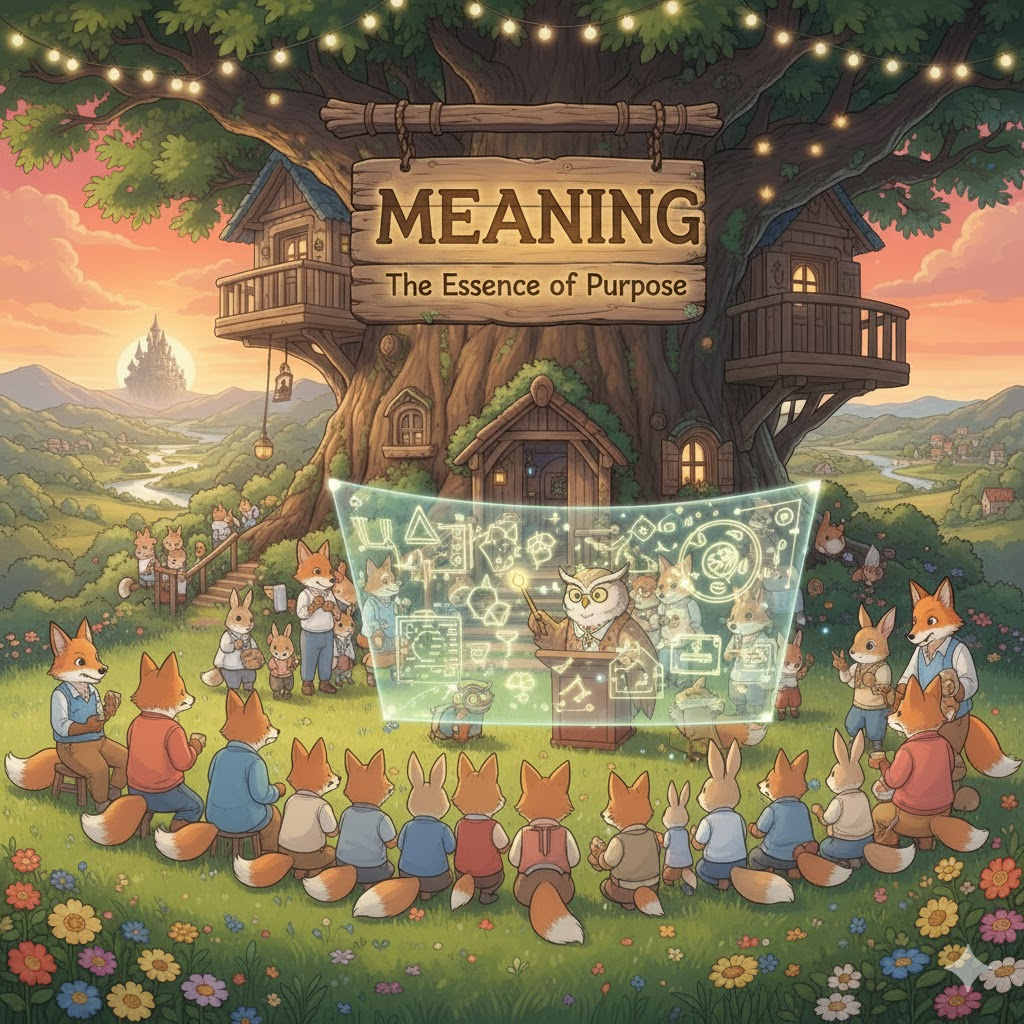 철학적/함축적 의미. 존재의 목적, 의미를 찾는 행위, 숨겨진 뜻.