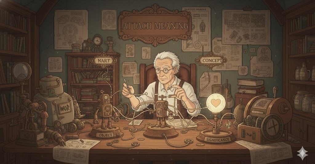 attach meaning to [əˈtætʃ ˈmiːnɪŋ tuː]