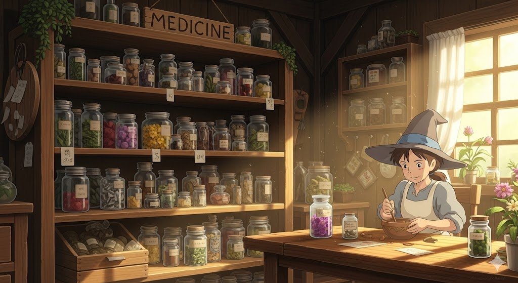 라틴어 medicina ("의술, 치료법, 치료제")에서 유래 → medicus ("의사, 치료자")에서 파생 → 즉, 원래 **'질병을 치료하는 기술이나 물질'**을 의미했음 → 이 의미가 현대 영어에서 '질병을 치료, 예방, 완화하는 물질' (약, 의약품) 명사로 굳어졌어요. 나아가 이러한 '치료'라는 개념이 확장되어 '질병을 다루는 과학 분야' (의학)와 '대안적인 치유 방법' (치유법)을 뜻하게 되었어요. 즉, **'치료 물질, 치료 과학, 또는 치유 방법'**을 나타내는 핵심 다의어예요.